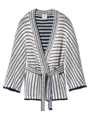 Gilet blanc en maille avec rayures bleu et ceinture de H&M