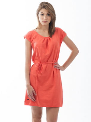 Robe corail en coton à manches courtes avec ceinture à nouer de Leax