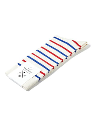 Chaussettes blanches en coton avec rayures bleu et rouge de Royalties