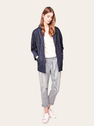 Pantalon blanc et bleu longueur cropped de Comptoir des Cotonniers
