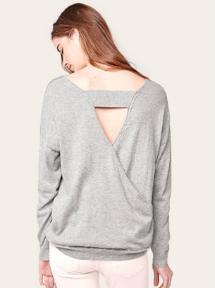 Pull gris en coton et cachemire avec décolleté triangulaire dans le dos de Comptoir des Cotonniers