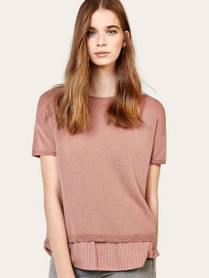 Pull-over rose avec top en dessous en matière contrastée et ouverture au dos de Comptoir des Cotonniers