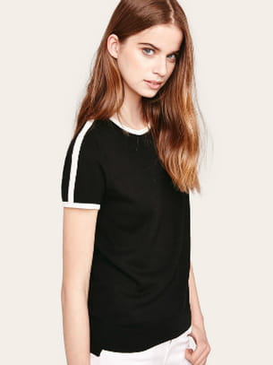 Pull-over noir en coton mélangé avec détail blanc de Comptoir des Cotonniers
