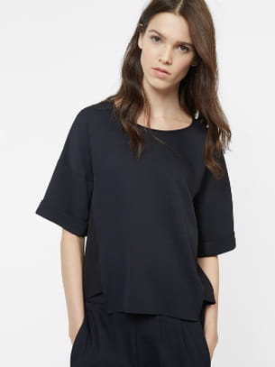 Top noir en crêpe japonais sur le devant et maille milano au dos de Comptoir des Cotonniers