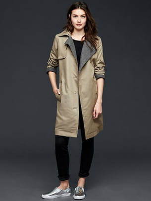 Manteau mi-long bicolore couleur beige et gris de Gap