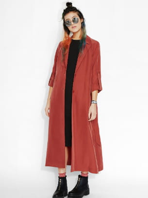 Manteau long ceinturé ample et fluide couleur rouge de Monki
