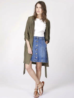 Manteau mi-long ceinturé fluide couleur kaki de Black Mojito