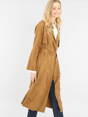 Manteau long ceinturé en suédine fluide couleur naturel de Pimkie