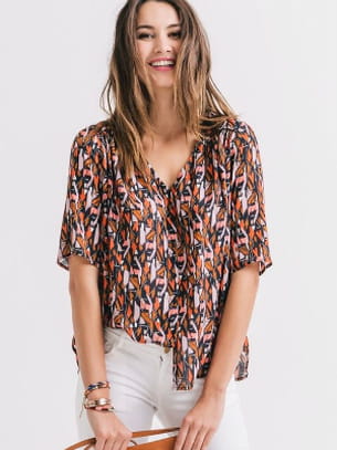Chemisier multicolore avec imprimé graphique et manches coudes de Promod