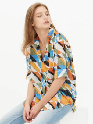 Chemise multicolore avec imprimés géométriques et manches courtes de Sandro
