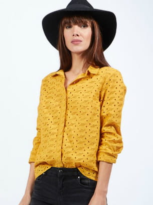 Chemise jaune avec broderies ajourées de Etam