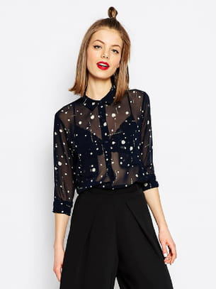 Chemise noire transparente imprimé taches d'encres de Samsoe & Samsoe chez Asos