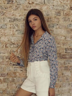 Chemisier bleu avec imprimé fleurs de Paul & Joe Sister