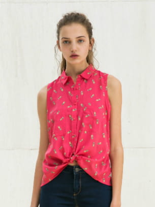 Chemisier rose avec imprimé ananas sans manches de Bershka