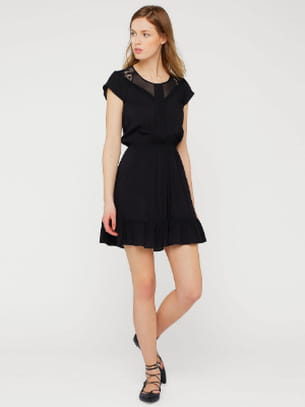 Robe noire en tissu souple avec dentelle sur le haut de C&A