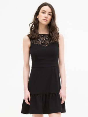 Robe noire en crêpe avec empiècement dentelle et deux poches sur le côté de Zapa
