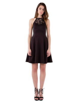 Robe noire avec col en dentelle et emmanchures américaines de Mim