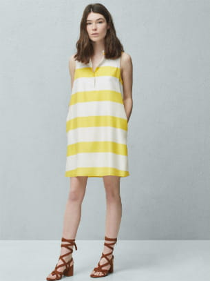 Robe blanche avec rayures jaunes et col chemise de Mango