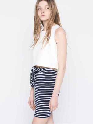 Jupe courte bleu marine à rayures blanches avec un nœud décoratif de Pull and Bear