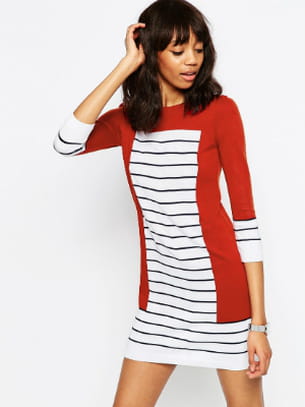 Robe blanche avec bordures rouge et rayures bleu marine de Asos
