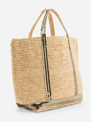 Sac à main forme cabas entièrement tissé à la main en raphia et paillettes de Vanessa Bruno