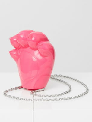 Sac à main minaudière porté bandoulière rose en acétate forme patte de tigre de Kenzo