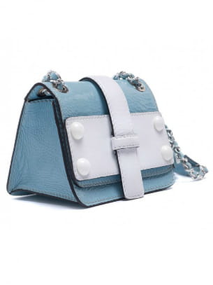 Sac à main rigide porté bandoulière en cuir de chèvre bleu ciel et blanc de Tara Jarmon