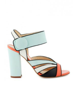 Chaussures à talons en cuir bleu noires et saumon de Cosmo paris