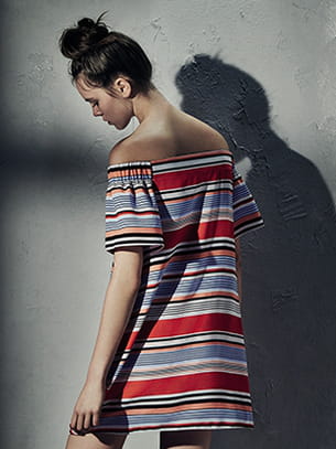Robe à rayures bleu, blanc, rouge et noir, courte à encolure bateau qui met en valeur les épaules de New Look