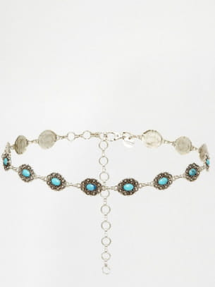 Ceinture argentée à disques ornées de turquoises de Black & Brown sur Asos