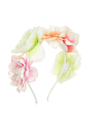 Serre-tête blanc avec grosses fleurs multicolore sur le dessus façon couronne de New Look