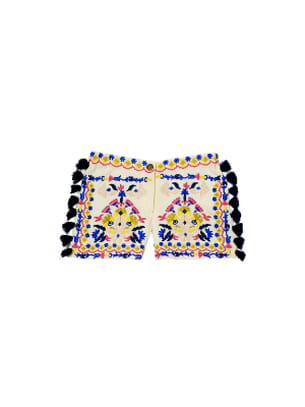 Short blanc avec motifs multicolore et pompons noirs sur les côtés de Monoprix X Antik Batik