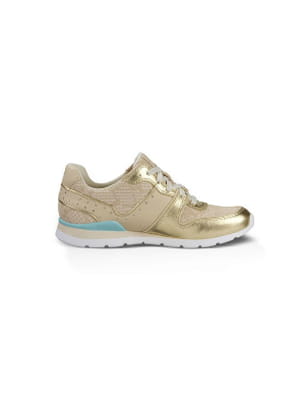 Sneakers beiges en suède et cuir avec empiècement turquoise de UGG