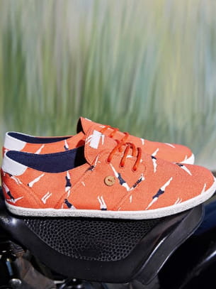 Sneakers orange en coton avec motifs silhouettes rétro Cyrillus X Faguo
