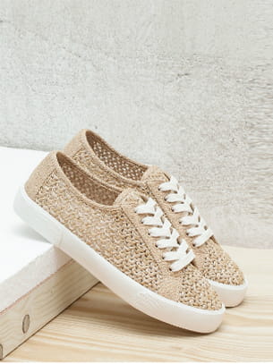 Sneakers beiges en tissu tressé façon corde de Bershka