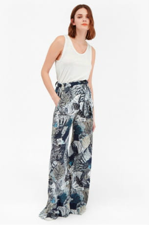 Pantalon taille haute en toile imprimé palmes bleu de French Connection