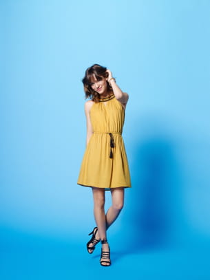 Un tissu fluide à micro pois lamés ton sur ton, une encolure Cléopâtre en macramé et des pompons : cette robe (25 €) donne du style en un clin d'œil. Grâce à son jeu de fronces et à sa découpe sous le col, elle sublime la poitrine, tandis que la taille est marquée grâce à un lien coulissant. En prime, sa coupe trapèze et sa longueur mi-cuisses élancent la silhouette.