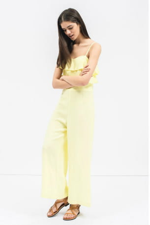 Combinaison pantalon jaune pâle bustier à volant de Sinequanone