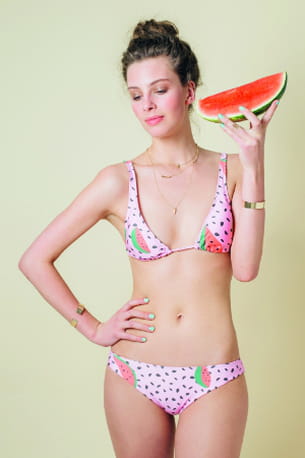 Maillot de bain deux pièces formes au choix rose imprimé pois et pastèque de Juniqe