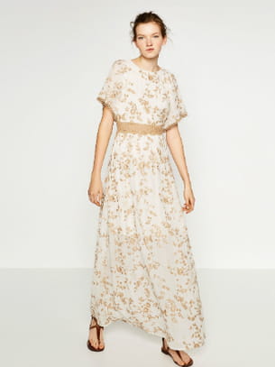 Robe crème et beige avec broderies en forme de fleurs de Zara