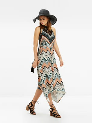 Robe écrue avec rayures multicolores et encolure crochet de Oasis