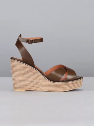 Chaussures ouvertes avec brides en cuir marron et talon compensé de Anthology Paris sur Mon Showroom