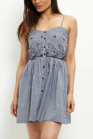 Robe patineuse à bretelles et carreaux Vichy brodée bleue de New Look