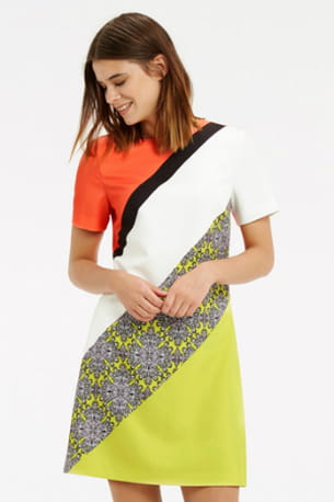 Robe droite courte multicolore orange jaune et blanche de Oasis