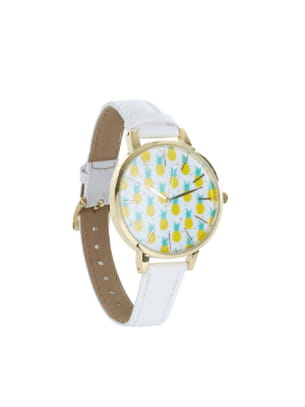 Montre blanche en similicuir avec cadran imprimé d'ananas de New Look