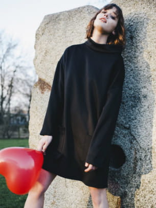 Robe noire en néoprène avec col cheminé et épaules tombantes de Blondifox