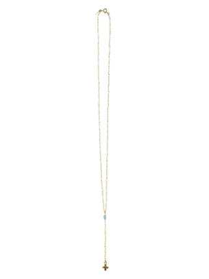 Collier style chapelet court avec chaîne en laiton plaqué or perle d'agate blanche et petite croix en laiton dore de Une à Une