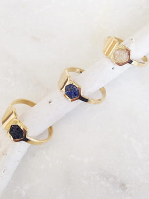 Bague dorée fine de hauteur 5 mm et réglable avec pierre semi précieuse incrustée de Giselb.
