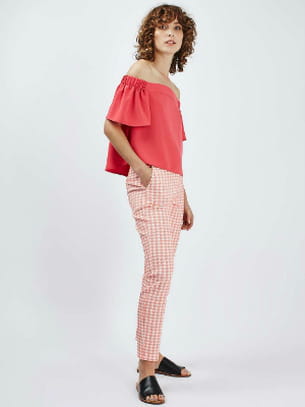 Pantalon cigarette rose et blanc imprimé vichy de Topshop
