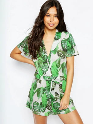 Combinaison short à manches courtes et à motifs feuilles de monstera de Asos